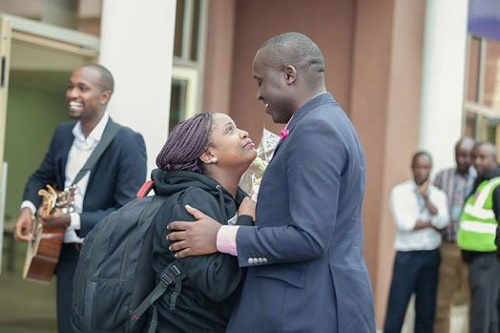Antony Buluma Samba proposed to Gettie Nthiiri at the airport (Photo:Nairobi News)