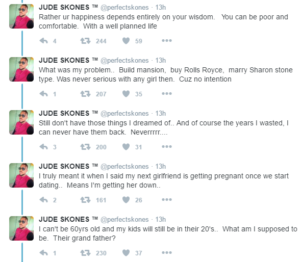 He’s over 30 now, the billions still haven’t come. He’s finding it harder to find true love, he sees his mates on a daily playing with their 2, 3 kids while he has none and Jude says that’s his greatest regret.
