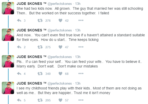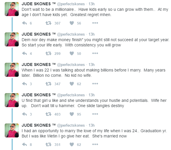 He doesn’t want younger men, 22 and above, making the same mistakes as he did so he took to his Twitter page to make this passionate plea. Read and let’s know if you agree with him.