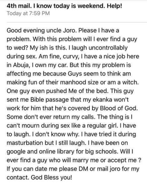 An Abuja-based lady who is doing well for herself financially has opened up on an irregularity in her s*x life which she has been secretly battling with.