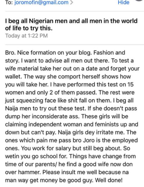 Joro Olumofin, a relationship blogger has entertained two different accounts on the same issue on his Instagram page. In case you want to test the strength of your relationship, you might plan something related to the stories below: